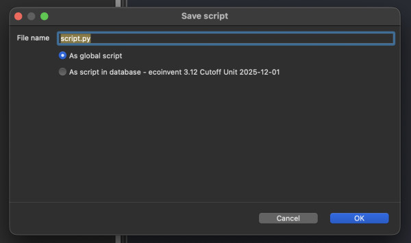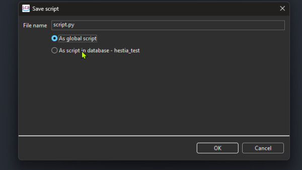 I'm trying to save scripts using the internal editor but they are not saved as global or local scripts.