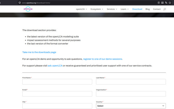 The download link on the homepage and the navigation header are broken. They both direct to http://www.openlca.org/download-form/, which gives error below: