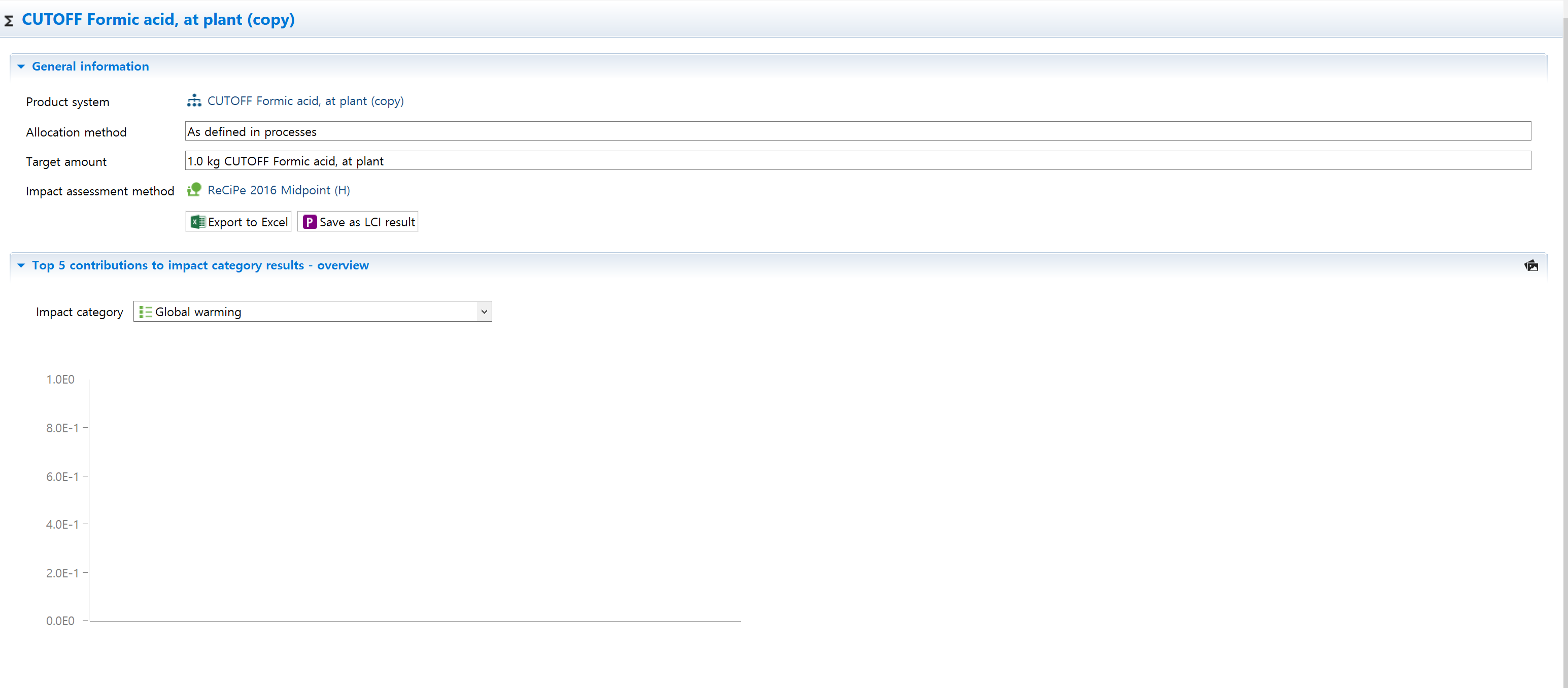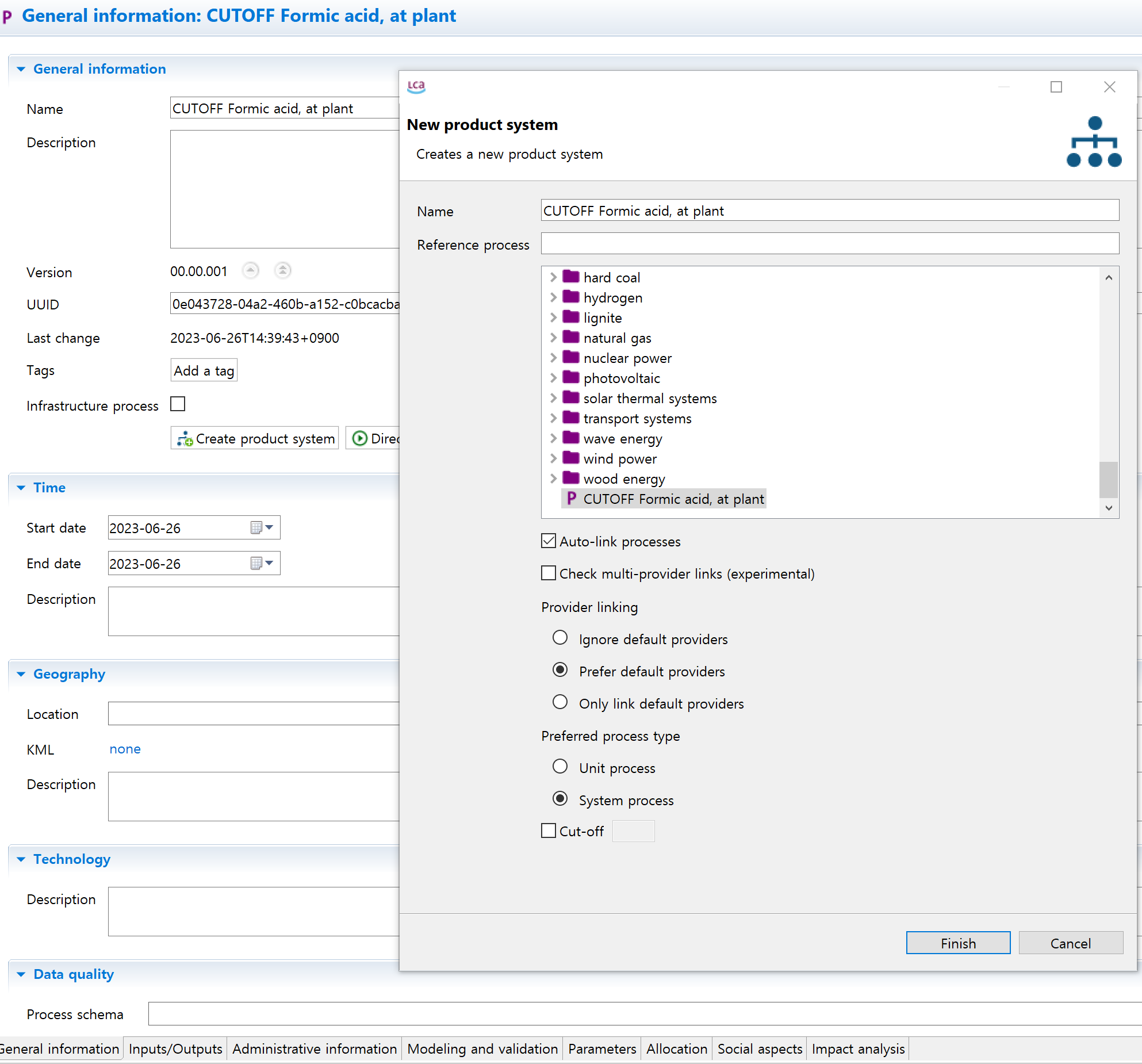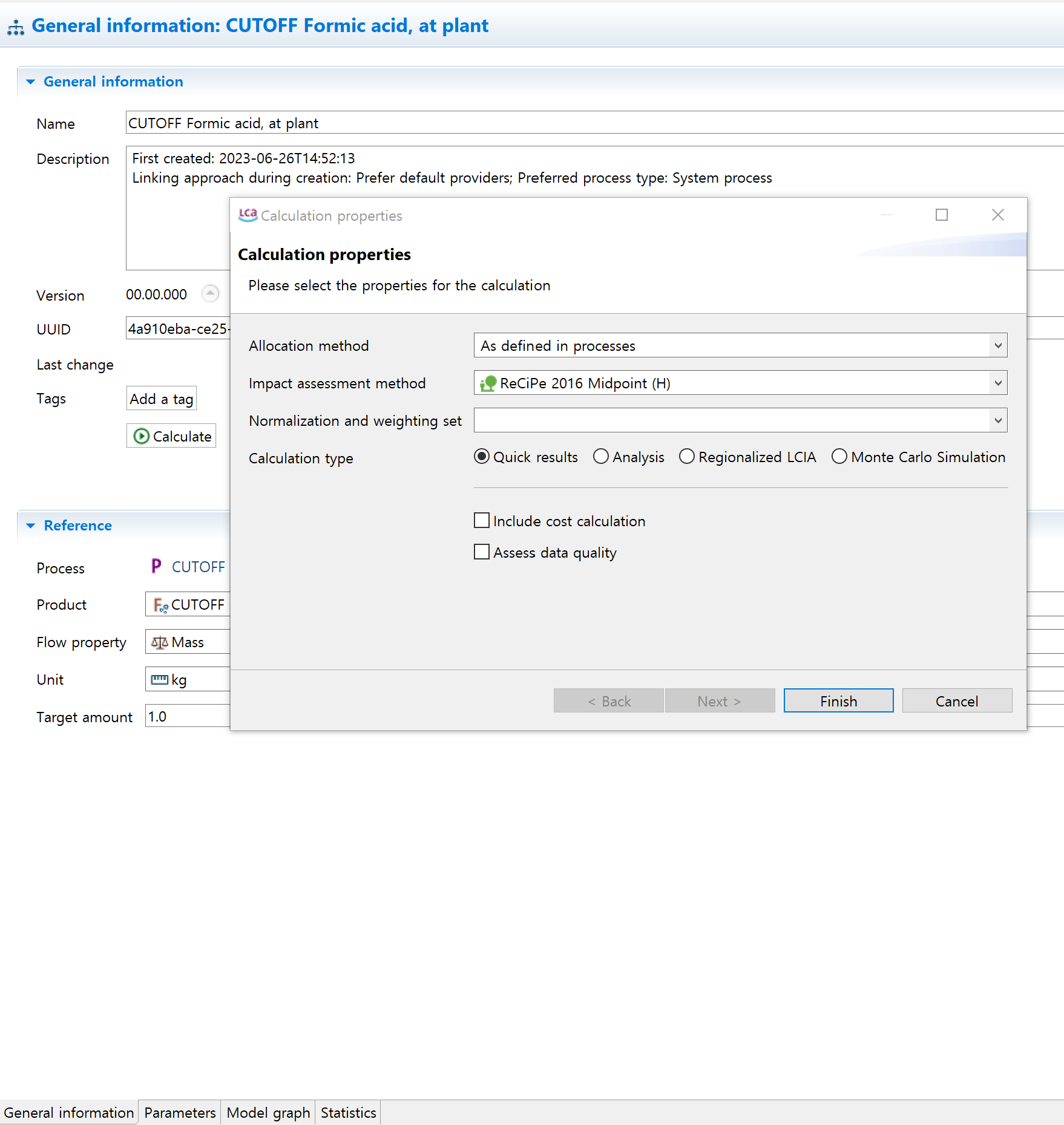 Below is the database and LCIA method I used.