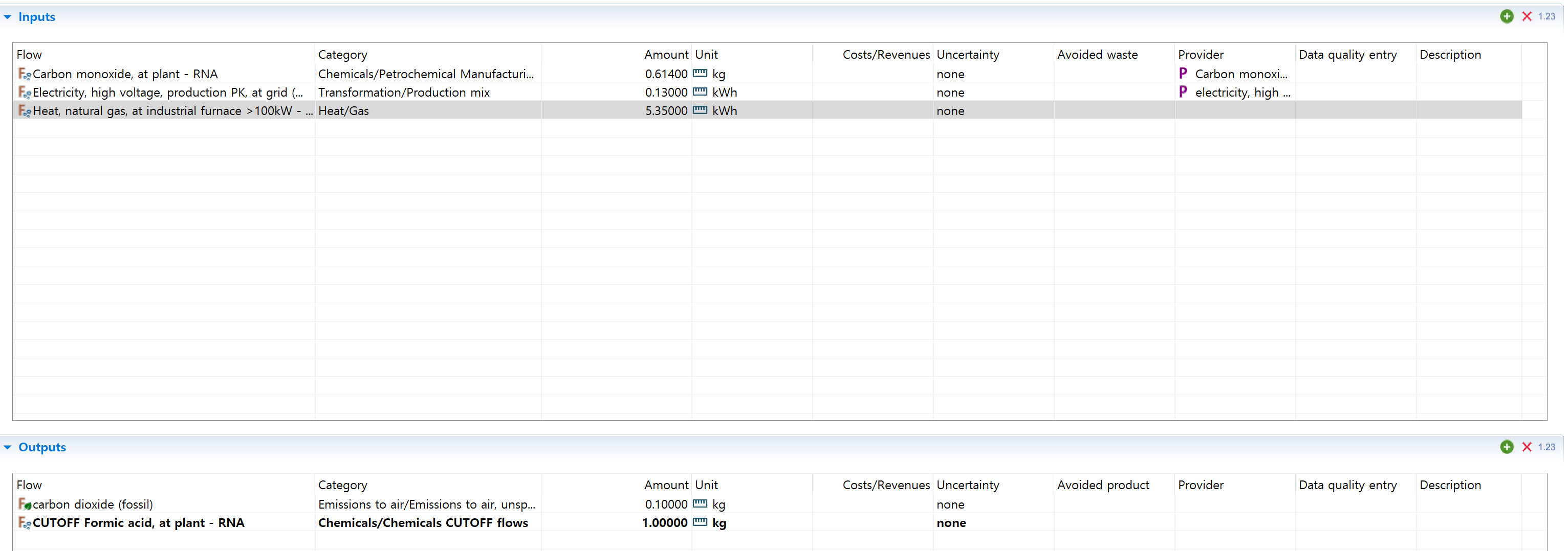 database: openlca free database (all)