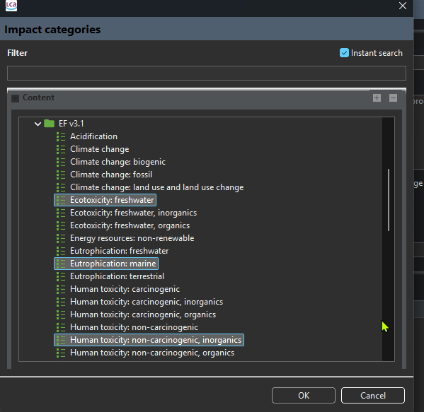 I am currently intereted in assigning the calculated impact categories of our ongong project on smoked African catfish production using different energy mix, to only a few impact groups (acidification, water use, climate change, resource use, land use, and particulate).