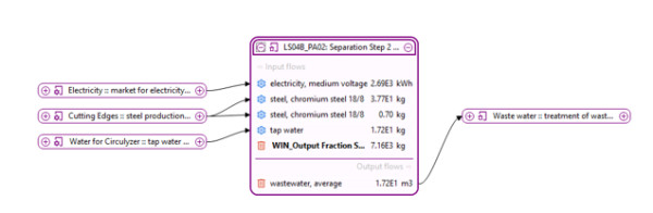 As an input, I use Elecricity, water and steel. Here the steel represents the cutting edges, which are regularly changed. Because I have two cutting edge components, i originally have two inputs of the same material: